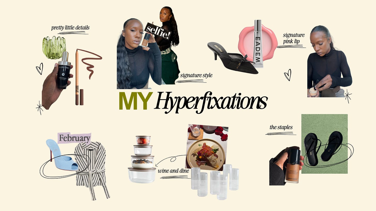Instead of rushing to the next I want to sit in my current hyperfixations for a little bit. Let things linger. My list includes everything from hair styles to makeup, serums, everything in between and beyond.